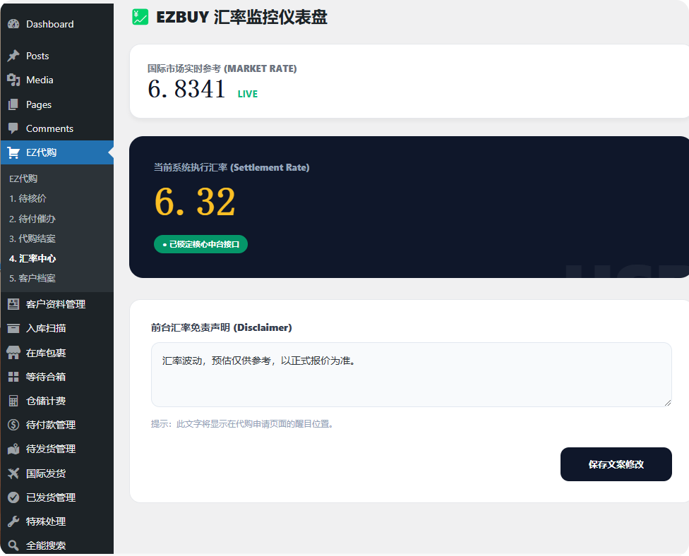 自带一个美元汇率实时同步系统,他会实时跟踪美国摩根和欧洲央行的汇率。并且计算了,帮你实时更新代购系统的汇率。